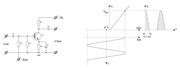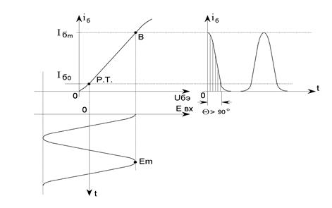 Рис 2.22. Работа усилительного элемента в режиме С.