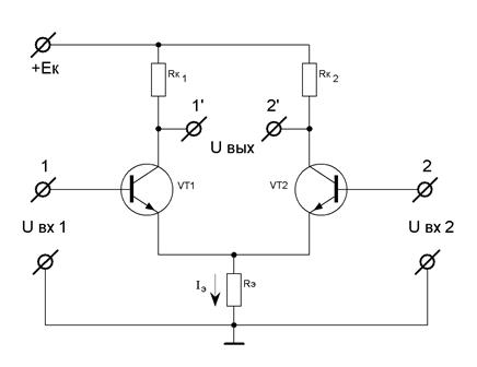 Рис. 8.9. Схема транзисторного дифференциального усилителя.