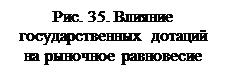 Дотации – это государственные выплаты производителям определенных сумм с целью увеличения объема производства. Например, государство вводит “потолок” цен на продукцию фермеров, чтобы стимулировать спрос населения на продовольствие. Используем график (см. рис. 35), на котором показано равновесие на рынке продовольствия (точка Е).