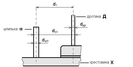 (d02 – відстань між зовнішніми краями дротини Д і шпильки b )