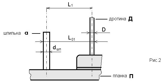 (L02 – відстань між зовнішніми краями дротини Д і шпильки b )