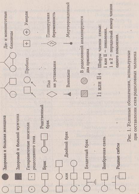 1. С б о р сведений (опрос и обследование) о наличии (отсутствии) анализируемого признака (болезни) у родственников пробанда и составление легенды о каждом из них. Желательно лично собрать сведения о родственниках не менее 3-4 поколений.