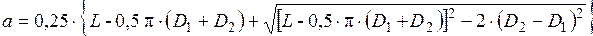 amin = 0,55×(D1 + D2) + T0; amax = 2×(D1 + D2),
