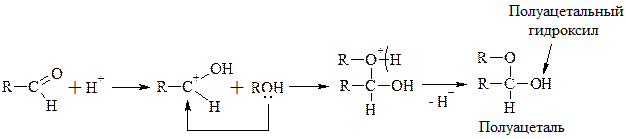 Полуацетали – это соединения, содержащие при одном атоме С гидроксильную (–ОН) и алкоксильную (–ОR) группы.