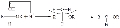 По такому же принципу протекает р-ция с РС15 и р-ция с двумя молекулами спирта.