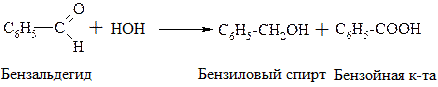 4) Если альдегид не имеет атома Н у a-углеродного атома, то он в такую р-цию не вступает, но легко вступает в р-цию дисмутации (окисления - восстановления). Эта р-ция наз-ся еще р-цией диспропорционирования, или р-цией Канницарро-Тищенко: