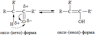 5) В связи с увеличением подвижности атомов Н в a-положении по отношению к карбонильной группе для кетонов характерно также явление кето-енольной таутомерии. Таутомерия – это вид изомерии, происходящей путем перемещения атома Н в молекуле. Образующиеся изомеры находятся в динамическом равновесии и переходят друг в друга за счет внутримолекулярного перемещения атома Н. Этот вид изомерии наз-ся также прототропной: