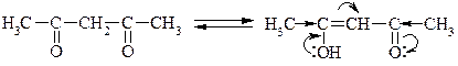 Обычно процент енольной формы невелик и соответсвует 10-5 – 10-6%. Увеличение цепи сопряжения, введение ЭА заместителей способствует увеличению содержания енольной формы. Так, в ацетилацетоне енольной формы больше, чем в самом ацетоне: