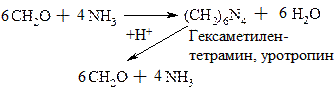 Уротропин – дезинфицирующее средство при воспалении мочевых путей. Его действие основано на способности в кислой среде за счет обратимости приведенной выше р-ции расщепляться с выделением формальдегида.