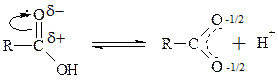 группе. По причине р, p-сопряжения карбоновые к-ты более сильные к-ты, чем соответствующие им спирты. Электронная плотность в карбоксилат-анионе выравнена и нет двойных и одинарных связей: