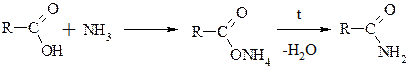 Характерным св-вом амидов является р-ция гидролиза их. Поэтому практически амиды получают из ацилхлоридов. Р-ция образования амидов играет большую роль в организме: за счет этой р-ции происходит обезвреживание токсичного NH3.