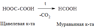 1) Если гр. – СООН расположены близко друг к другу, то происходит декарбоксилирование, т.е. удаление карбоксильной гр. путем отщепления СО2. Это характерно для щавелевой и малоновой к-т.