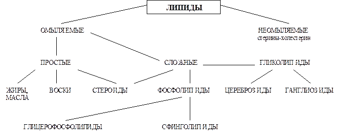 Сложные липиды содержат много компонентов. Это Н3РО4, углеводы, N-содержащие компоненты. У них имеются пептидные, гликозидные и сложно-эфирные связи. Поэтому, для их гидролиза необходимо много ферментов. К сложным липидам относятся глицерофосфатиды, сфингофосфатиды, гликолипиды, некоторые стероиды (эфиры холестерина).