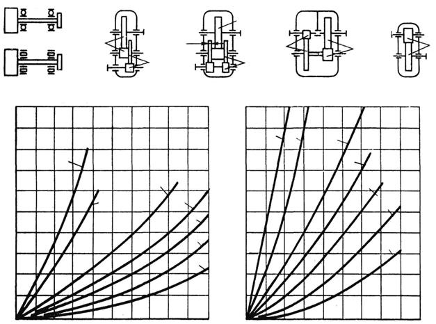 4.1.4. Коэффициент КНβ находят по рис. 4.1. Цифры у кривых соответствуют передачам, указанным на схемах, а кривые 1 и 2 – передачам внешнего или внутреннего зацепления с консольным расположением зубчатых колес.