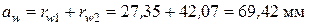 Находим суммарное число зубьев zΣ =14 + 25 = 39 и рассчитываем делительное межосевое расстояние