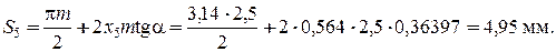 Делительный окружной шаг зубьев р = πm = 3,141592 · 2,5 = 7,85 мм.