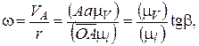. Векторы линейных скоростей точек прямой ОА в масштабе μV ограничиваются наклонной Оа, составляющей угол β с прямой ОА и характеризующей распределение этих скоростей на отрезке ОА.