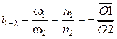 Если отрезки на плане угловых скоростей располагаются по разным сторонам от точки О, то колеса вращаются в противоположные стороны: одно – по часовой стрелке, другое – против. Следовательно, передаточное отношение оказывается отрицательным. В случае, когда отрезки