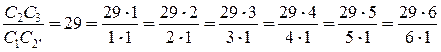 Сомножители С1=30; С2=29; С2'=С3=1 не дают решения, так как С3-С2'=0.