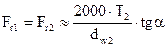 Примечания.Ft1, Ft2, Fx1, Fx2, Fr1, Fr2 в H; Т2 в Н×м; dw2 в мм; a = 20° – угол профиля; направление сил показано на рис. 18.2.