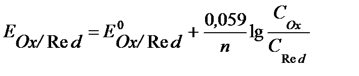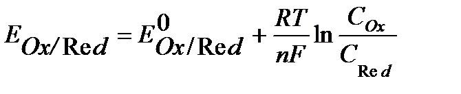 где СOx, CRed– концентрации окисленной и восстановленной формы соответственно, моль/л.