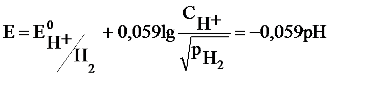 При давлении водорода, равном 105Па (1 атм), активности (концентрации) ионов водорода СН+ =1 моль/л и Т=298К водородный электрод называется стандартным водородным электродом.