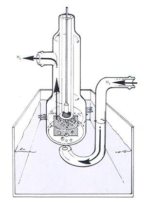 Водородный электрод. Водородный электрод состоит из платиновой проволоки, покрытой платиновой чернью (электролитически осажденной платиной) и погруженной в раствор кислоты (рис.2). Через раствор непрерывно пропускается поток водорода, водород «растворяется» на поверхности платины и на границе электрод / раствор устанавливается равновесие: