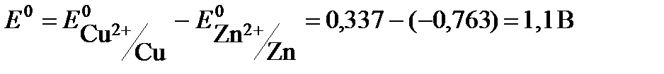 ЭДС гальванического элемента рассчитывают как разность потенциалов катода и анода: Е = Ек – Еа.