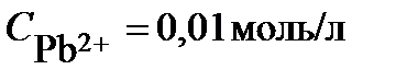 Для определения анода и катода рассчитаем по уравнению Нернста значения электродных потенциалов цинка и свинца, поскольку концентрации потенциалопределяющих ионов отличаются от 1 моль/л.