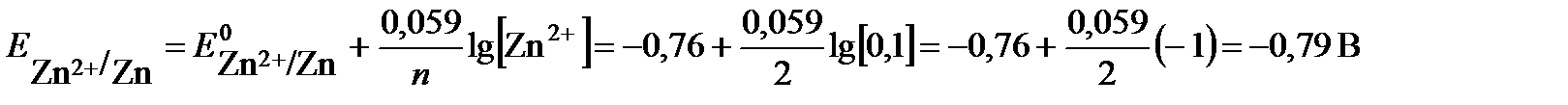 Потенциал второго электрода рассчитаем по уравнению Нернста: