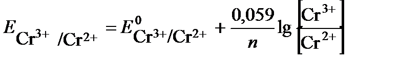 Потенциал окислительно-восстановительного электрода рассчитываем по уравнению Нернста:
