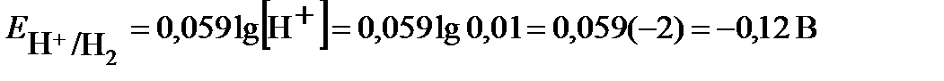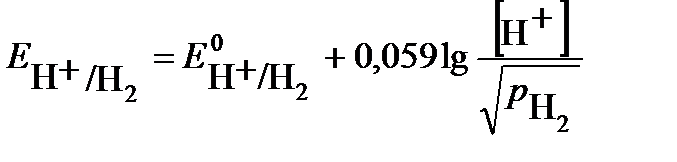 Второй электрод данного гальванического элемента является водородным электродом. Потенциал газового водородного электрода, согласно уравнению Нернста, зависит от концентрации (активности) ионов водорода и давления газа водорода в растворе: