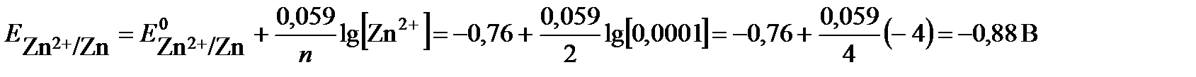 ПРИМЕР 5. Какие процессы протекают на электродах цинкового концентрационного гальванического элемента, если у одного из электродов концентрация (активность) ионов цинка Zn2+ равна 1 моль/л, у другого – 0,0001 моль/л? Какова ЭДС этого элемента?