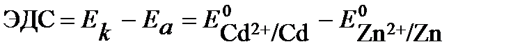 Zn + Cd2+ = Zn2+ + Cd. Между константой равновесия реакции, протекающей в гальваническом элементе и ЭДС элемента, существует зависимость: