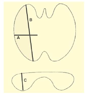3.8 сурет.УДЗ арқылы ҚБ көлемін анықтау. Без көлемі мына формула арқылы анықтайтын бөліктерінің көлеміне тең: АхВхСх 0,49