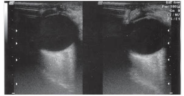 3.17 сурет. УДЗ мәліметтері бойынша эндокринді офтальмопатия кезінде дамыған көзқозғалтқыш бұлшықеттерінің жуандауы