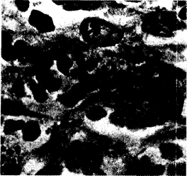 Рис. 111-2. Биопсия из язвы паховой гранулемы. Показаны мононуклеарные клетки, содержащие тельца Донована. Окраска по Райту — Гимзе.