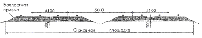 1. Расстояние между осями путей на перегонах двухпутных линий на прямых участках должно быть не менее 4100 мм.