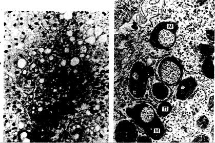 Рис. 311-2. Электронная микрофотограмма биоптата печени 6-летнего мальчика с бессимптомной болезнью Вильсона.