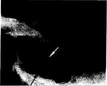 Рис. 321-12. КТ-сканограмма турецкого седла (в сагиттальной проекции) у больного с небольшой микропролактиномой (показана стрелкой.)