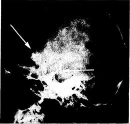 Выявление на плоскостных рентгенограммах черепа на основании узелковой или криволинейной кальцификации в супраселлярной области позволяет заподозрить краниофарингиому (рис. 321 -14). Подобную кальцификацию обнаруживают у 80—90% больных детей, но менее чем у 50% взрослых больных. Хотя турецкое седло может быть увеличено и растянуто, кортикальная кость обычно сохраняется. При внутриселлярных краниофарингиомах спинка турецкого седла часто смещена назад. При КТ-сканировании почти у всех больных детей и у 80% взрослых больных отчетливо видны кистозные участки с кольцом узелковой кальцификации. Некистозные области после введения контрастного вещества так или иначе увеличиваются; у детей это особенно заметно.