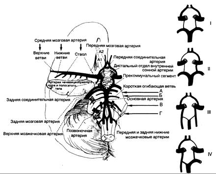 Рис. 343-1. Артериальное кровоснабжение мозга.