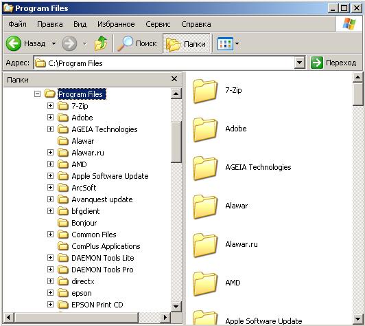 Рис. 2.9. Окно Program Files. В лівій частині відкрите вікно провідника