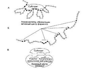 ïðîñòðàíñòâåííîé ñòðóêòóðå ôåðìåíòà ìîæíî âûäåëèòü îòäåëüíûå ó÷àñòêè, êîòîðûå âûïîëíÿþò òå èëè èíûå ôóíêöèè (àêòèâíûé öåíòð, êîíòàêòíûé ó÷àñòîê, êàòàëèòè÷åñêèé ó÷àñòîê, àëëîñòåðè÷åñêèé öåíòð).