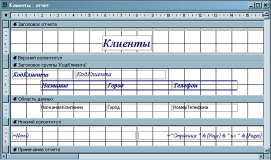 Звіт по таблиці Клієнти в режимі Конструктора виглядатиме таким чином: