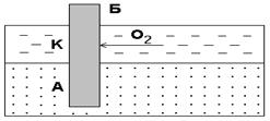 Рис. 7. Коррозия в результате неравномерного доступа кислорода. Б – свая; А – анодный участок; К – катодный участок