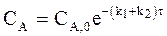 Интегрирование уравнения (10 - 3) с учетом граничных условий (СA = CA,0 при t = 0) дает: