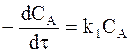 Кинетика расходования исходного вещества описывается обычным уравнением необратимой реакции первого порядка: