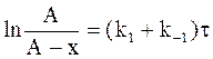 где t(1)1/2 и t(2)1/2 - соответственно время полупревращения исходного вещества и промежуточного соединения.