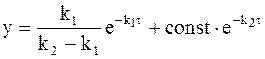 Для того, чтобы найти постоянную интегрирования, входящую в уравнение (10 - 28), воспользуемся исходными условиями: в начальный момент промежуточное соединение отсутствует (t = 0, y = 0), т.е.